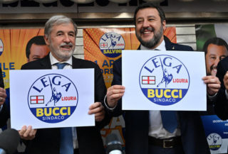 Bucci è un candidato indipendente di centrodestra, e secondo alcuni il leader leghista ha voluto approfittare della popolarità di cui già gode in città per ridare vigore al Carroccio, ammaccato dall’esperienza di governo e in calo nei sondaggi. Ma in realtà anche gli altri partiti del centrodestra hanno deciso di fare spazio al nome di Bucci nei loghi e nei manifesti elettorali, anche il partito del governatore ligure Giovanni Toti e persino Fratelli d’Italia, che a differenza della Lega gode di buoni consensi in questa fase.
