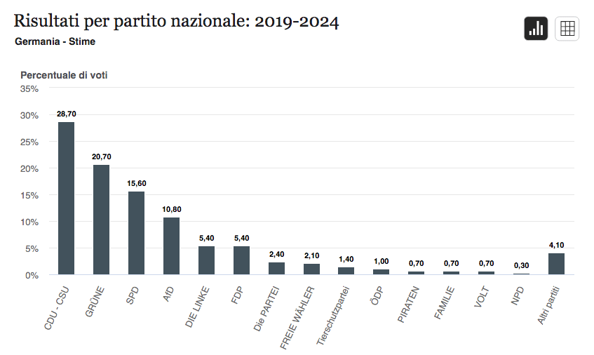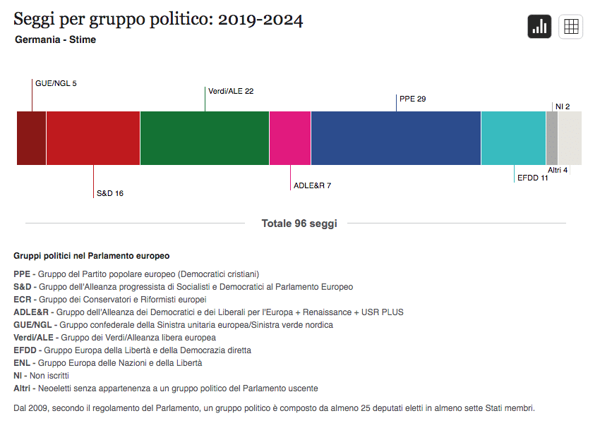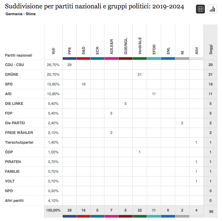 Qui una panoramica dei 96 seggi tedeschi, divisi per partito politico: