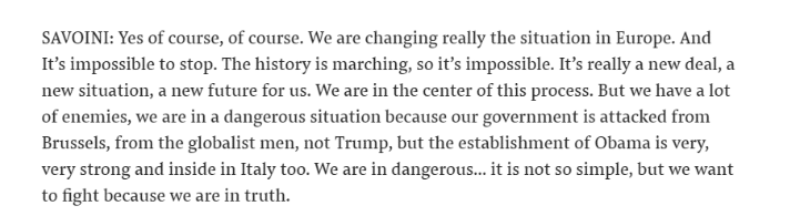 BuzzFeed ha reso pubblica la trascrizione di quel colloquio avvenuto il 18 ottobre 2018 a Mosca e in quell’audio Savoini parla di soldi provenienti dal commercio di petrolio russo e dell’importanza di un'”alleanza contro il processo di globalizzazione”.