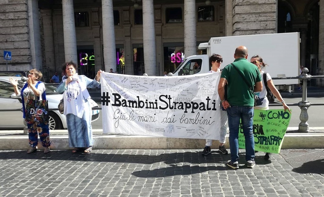 Mentre il governo Conte bis oggi nominava sottosegretari a Palazzo Chigi in Piazza Colonna aveva luogo un sit-in di protesta. “#Bambini strappati. Giù le mani dai bambini”, le frasi degli attivisti su uno striscione e un cartello.