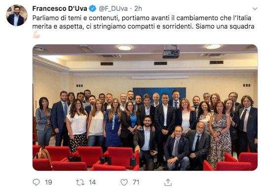 ore 15,55 – D’Uva (M5S): “Compatti e sorridenti, siamo una squadra” – “Parliamo di temi e contenuti, portiamo avanti il cambiamento che l’Italia merita e aspetta, ci stringiamo compatti e sorridenti. Siamo una squadra”. Il capogruppo M5s alla Camera Francesco D’Uva ha scritto queste parole sui social postando una foto dei capigruppo del Movimento nelle commissioni con il capo politico Luigi Di Maio.