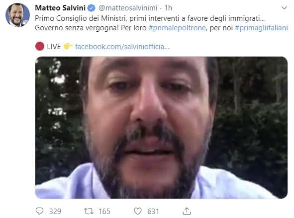 ore 19,20 – Salvini: “Bell’esordio. E invoca la piazza”. “Bell’esordio, rispettoso dell’autonomia delle popolazioni, dei governatori, dei territori, degli italiani per il governo Pd-M5s e Leu. E anche Leu perché non dimenticatevi di Fratoianni e Boldrini”. L’ha detto il leader della Lega Matteo Salvini in diretta Facebook, a proposito della decisione presa dal primo Consiglio dei ministri di impugnare due leggi del Friuli Venezia Giulia sui migranti. Salvini ha poi annunciato, in una diretta Facebook, un autunno di “lotta pacifica ma determinata”.