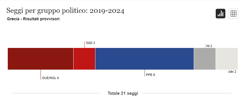 Qui una panoramica dei 21 seggi della Grecia, divisi per partito politico: