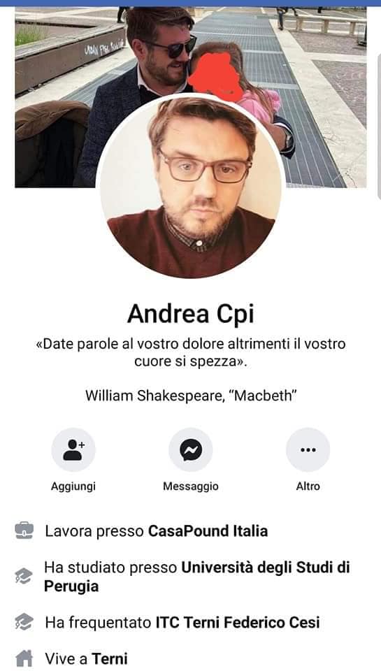 Il militante su Facebook si fa chiamare con uno pseudonimo: “Andrea Cpi”. “Cpi” è con tutta probabilità un acronimo di CasaPound Italia, il movimento politico di estrema destra di matrice neofascista in cui l’uomo dice di “lavorare”, nelle informazioni del suo profilo Facebook. Sotto al suo post si sono scatenati i commenti e nelle ore seguenti Gallini lo ha rimosso, forse intimorito dall’attenzione mediatica che aveva suscitato.