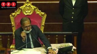 Al Senato Ignazio La Russa presiede i lavori sul Green pass senza mascherina e leggendo la Gazzetta