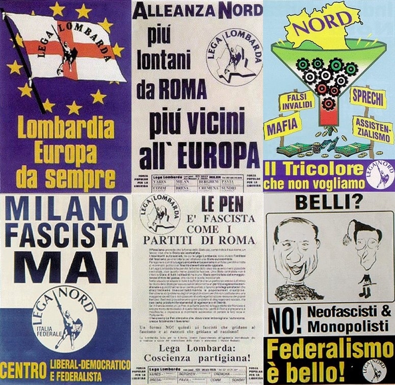 “Più lontani da Roma, più vicini all’Europa”, “Lombardia in Europa da sempre”, “Le Pen è fascista come i partiti di Roma”, “Milano fascista mai”. Non si tratta degli slogan di qualche forza liberal democratica attuale, bensì dei manifesti della Lega Nord degli anni Novanta e primi anni Duemila.