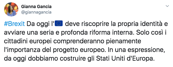 Eppure qualche flebile voce di contrasto a questa nuova visione c’è ancora. Solo pochi giorni fa, l’eurodeputata Gianna Gancia, eletta nella Lega, ha pubblicato un tweet in cui rivendicava la necessità di sostenere il progetto degli Stati Uniti d’Europa. Una posizione del tutto contraria al programma di Salvini, che ha suscitato molte polemiche interne.