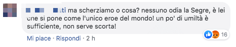 Una vera e propria vergogna, andata in scena tra i commenti delle pagine social dei principali quotidiani italiani e non solo. La colpa di Liliana Segre, chiamata spregevolmente “nonnina”, sarebbe, secondo gli hater quella di sperperare i soldi dei contribuenti italiani a causa della decisione del Comitato per la sicurezza e l’ordine pubblico di assegnarle la scorta.