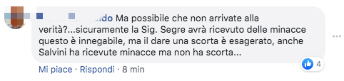 Qualcun altro, invece, fa notare che, nonostante le minacce subite, all’ex ministro dell’Interno Matteo Salvini non è stata assegnata alcuna scorta, una misura comunque ritenuta esagerata per la Segre.
