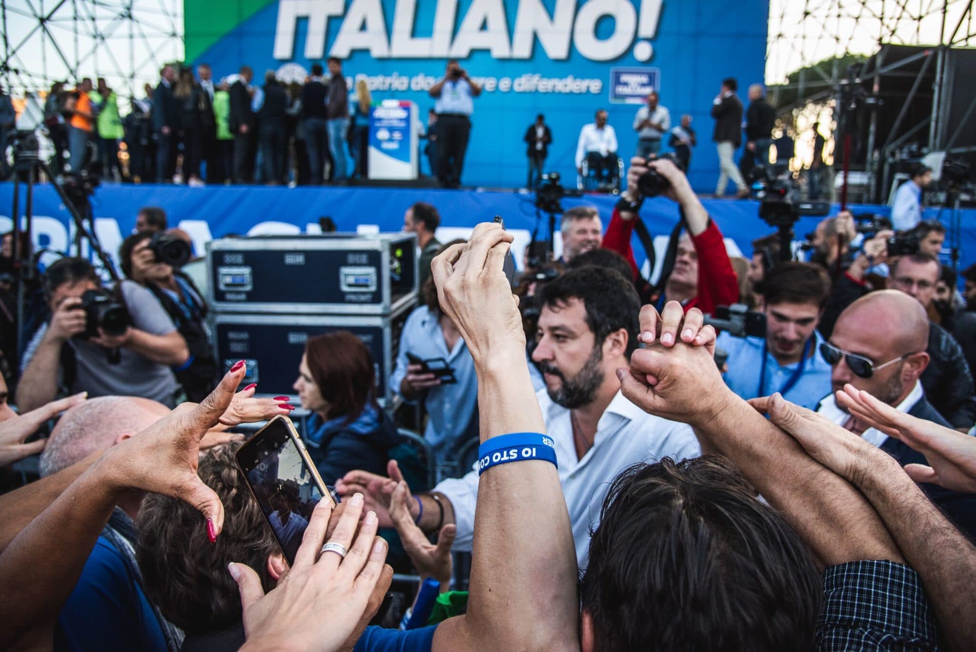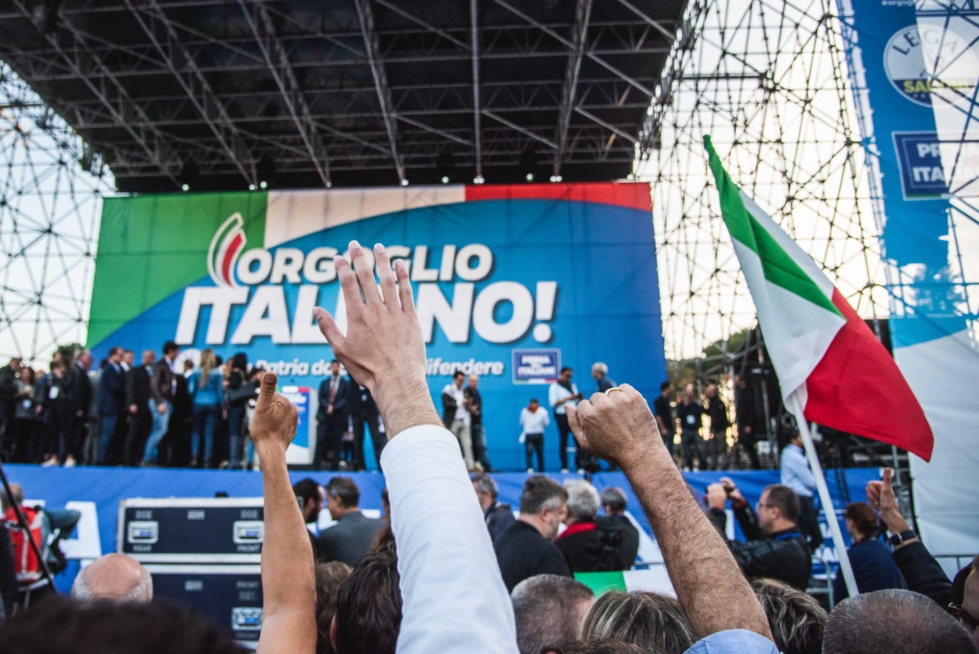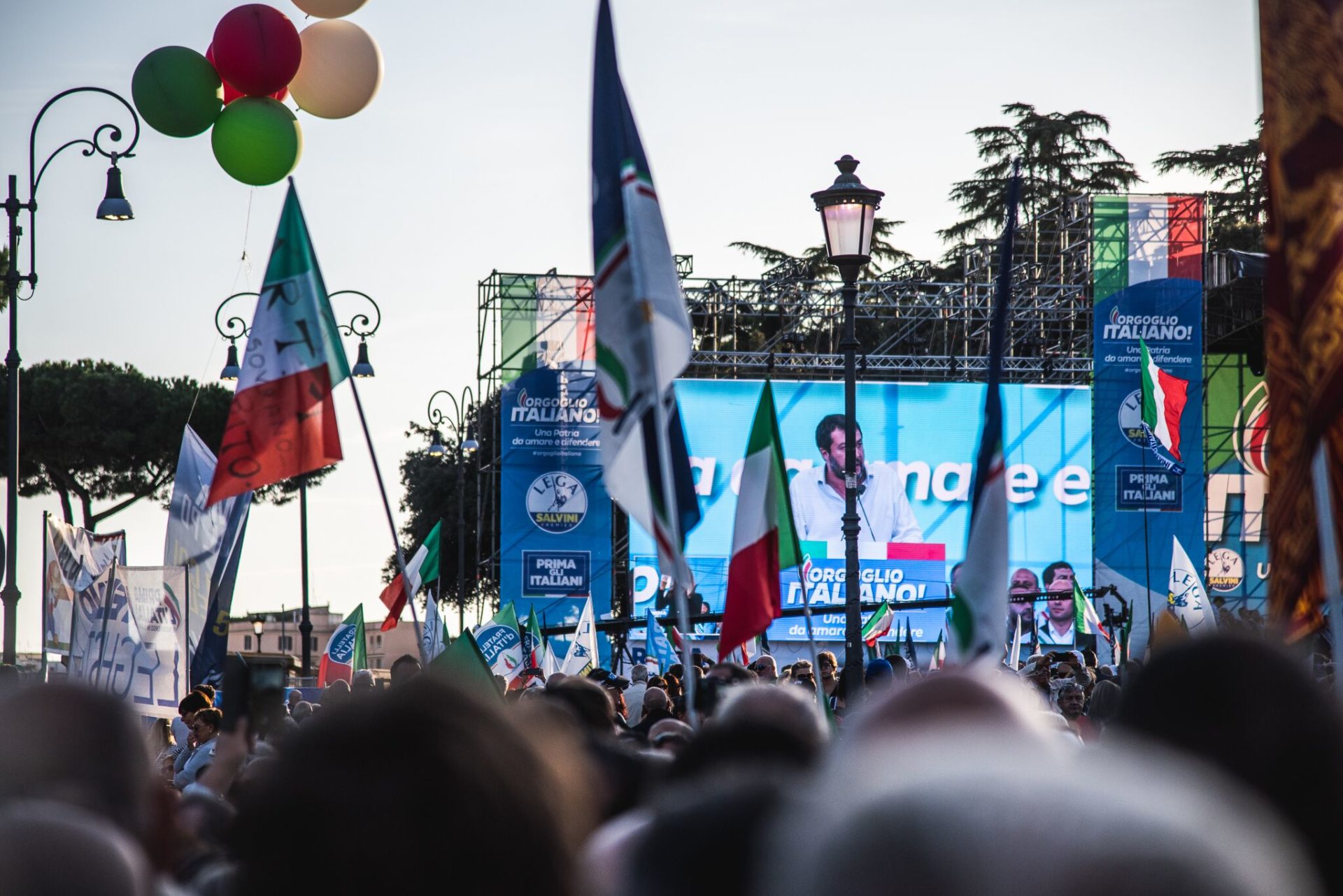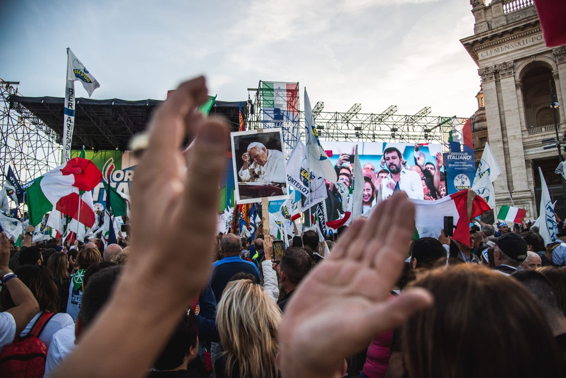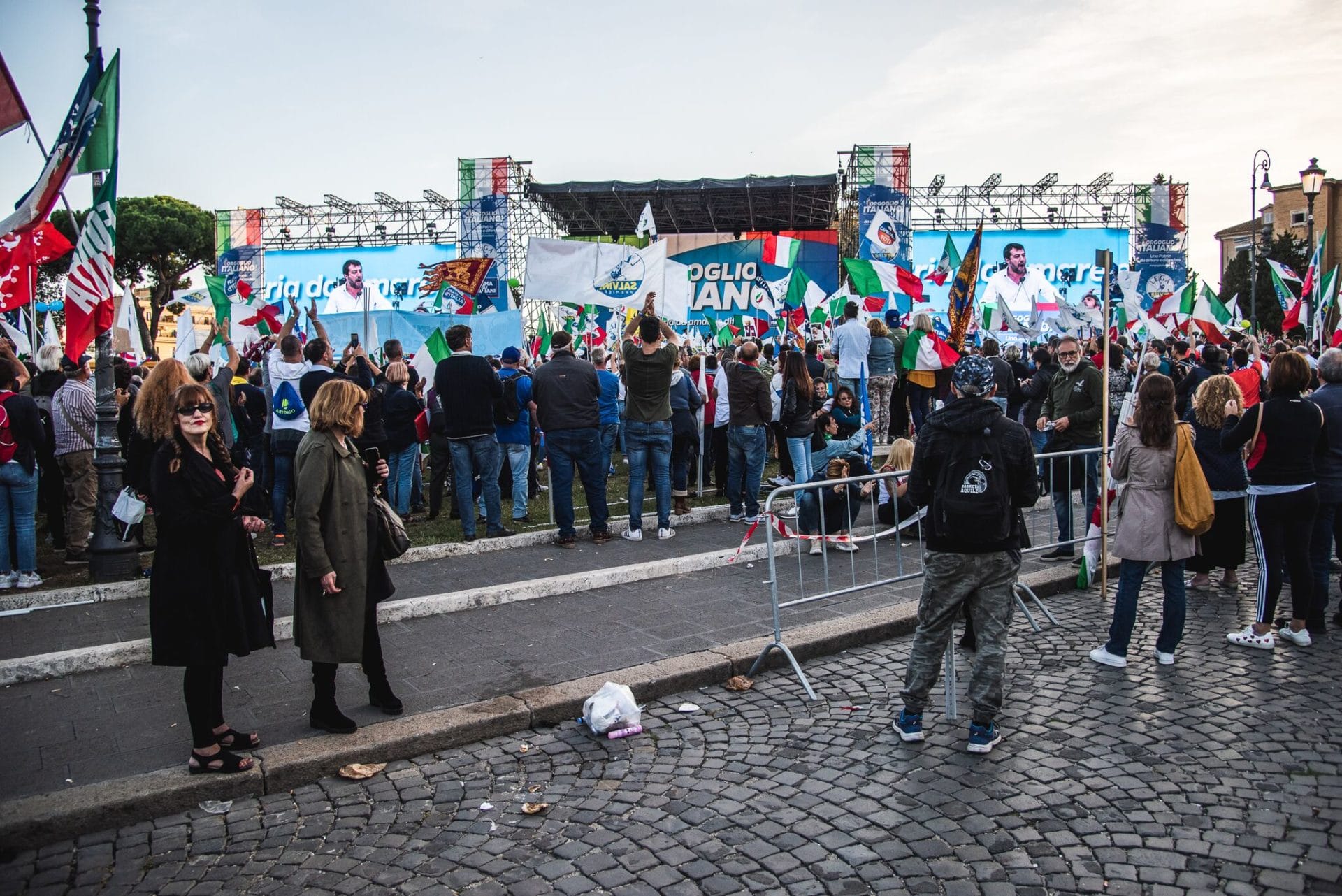Sabato 19 ottobre in piazza San Giovanni in Laterano a Roma è andato in scena il raduno della coalizione di centrodestra formata da Lega, Fratelli d’Italia e Salvini (qui il racconto della giornata). Nei loro interventi sul palco i leader dei tre partiti, Matteo Salvini, Giorgia Meloni e Silvio Berlusconi, si sono impegnati a unire le forze per rovesciare il Governo giallorosso, sostenuto da Movimento 5 Stelle, Partito democratico, Italia Viva e Liberi e Uguali. Di seguito alcune foto della manifestazione.