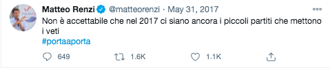 Quando Renzi scriveva: “Inaccettabile che ci siano ancora piccoli partiti che mettono i veti”
