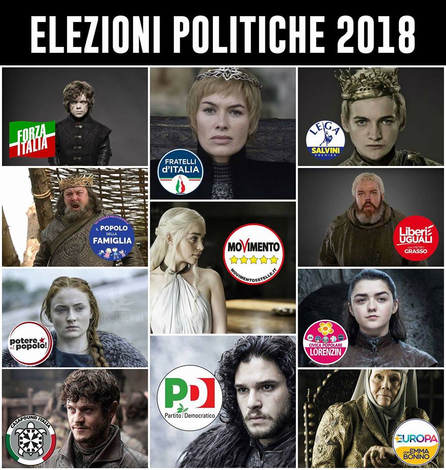 Che personaggi di Game of Thrones sarebbero i leader dei principali partiti politici in corsa alle elezioni parlamentari del 4 marzo 2018?