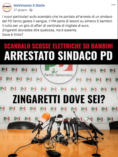 “I nuovi particolari sullo scandalo che ha portato all’arresto di un sindaco del PD fanno gelare il sangue. Il PM parla di lesioni su almeno 5 bambini. Il tutto per un giro di affari di centinaia di migliaia di euro. Zingaretti dovrebbe dire qualcosa, ma è assente. Dove è finito?”:
