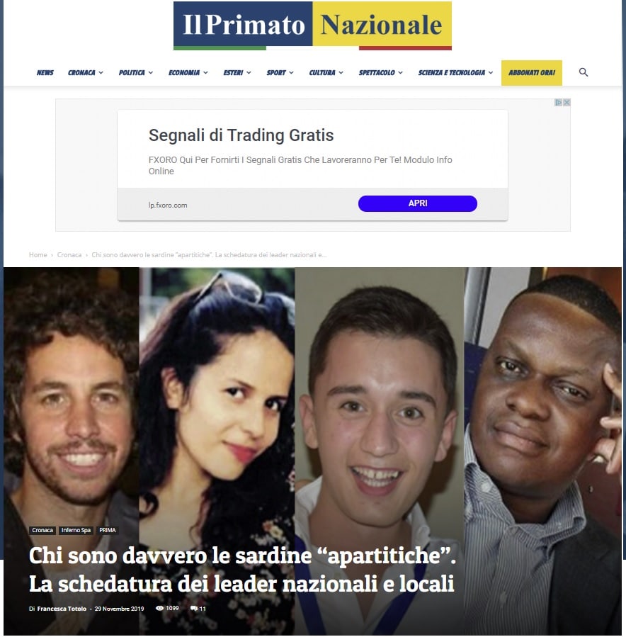 Nel pezzo de Il Primato Nazionale, a firma Francesca Totolo, viene messo in evidenza che “le sardine si sono dichiarate come un movimento apartitico ‘di persone normali’. Ma basta fare una rapida ricerca nei curriculum dei loro attivisti e degli organizzatori per comprendere quanto la suddetta affermazione non sia verificata nei fatti”. L’articolo elenca nomi, cognomi ed esperienza politiche o professionali delle “Sardine”.
