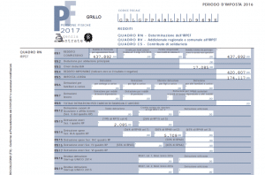 Beppe Grillo ha dichiarato oltre 400mila euro nell’anno fiscale 2017 (era 350mila circa nel 2016).