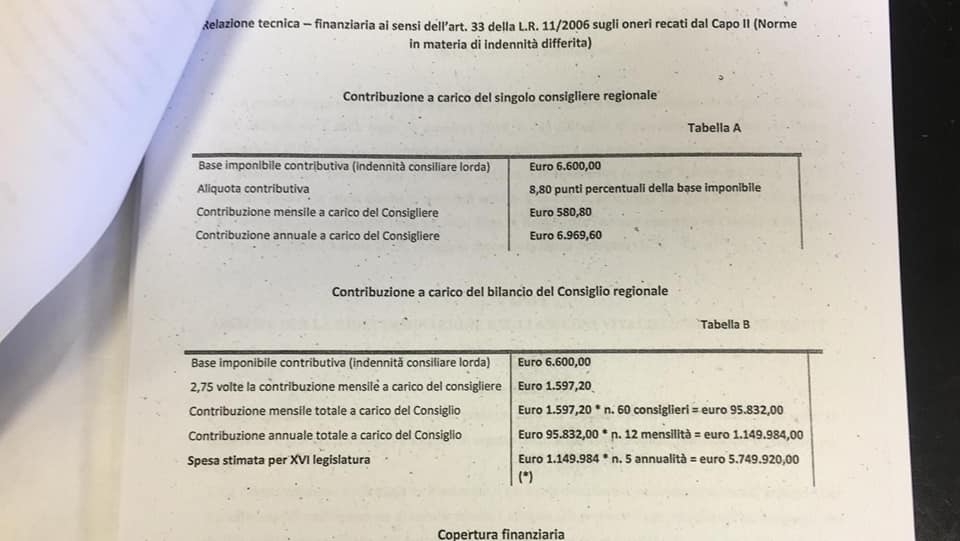 Per il futuro vitalizio, inoltre, viene prevista una contribuzione a carico del bilancio del consiglio regionale che, sempre secondo quanto dichiarato da Manca, porterà le spese del consiglio, stimate in 1.149.984,00 euro all’anno, alla cifra di 5.749.920,00 euro nell’arco di tutta la legislatura.