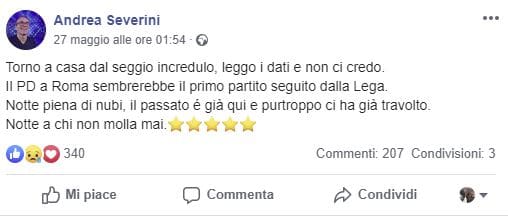 Che a persuadere i romani a non votare M5s sia stata anche l’insoddisfazione per la guida grillina della città? Si pone il problema il marito della sindaca pentastellata Virginia Raggi. Andrea Severini, esponente del movimento capitolino e primo fan della sindaca, scrive un post amaro sui social, subito dopo il voto: “Torno a casa dal seggio incredulo, leggo i dati e non ci credo.