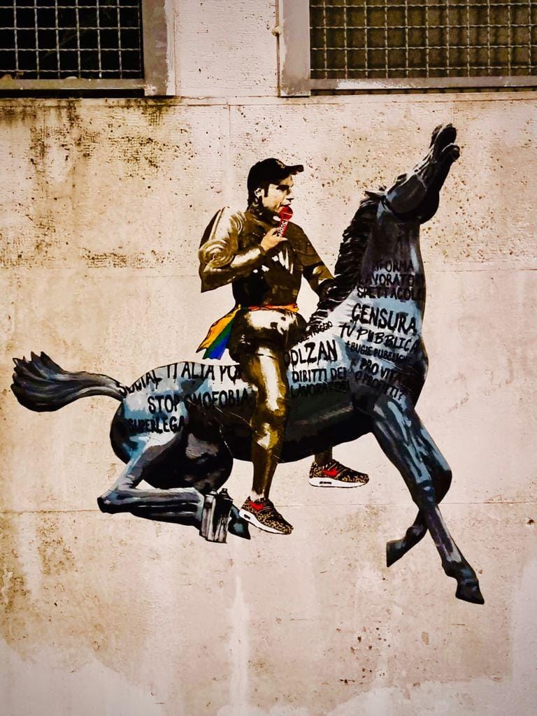 A Roma spunta il murales di Fedez che doma il cavallo Rai