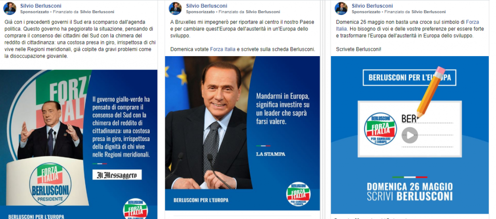 Negli ultimi 30 giorni, Silvio Berlusconi ha speso circa 59.000 euro in post sponsorizzati (93mila negli ultimi 3 mesi) colpendo un target per lo più rappresentato da utenti di genere femminile, residenti in Sud Italia e con un’età compresa tra i 45 e i 64 anni. Per quanto riguarda la pagina di Forza Italia, la somma spesa in inserzioni negli ultimi 30 giorni si aggira intorno ai 30mila euro.