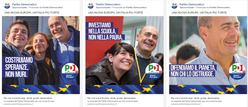 Il Partito Democratico, invece, ha investito in tutto 132mila euro tra marzo e giugno 2019 (95mila negli ultimi 30 giorni), finanziando anche i post del segretario Nicola Zingaretti, che però negli ultimi 3 mesi ha diffuso post sponsorizzati per soli 1.417 euro. Il target del Pd è composto in prevalenza da donne e uomini dai 18 ai 54 anni perlopiù del Sud Italia.