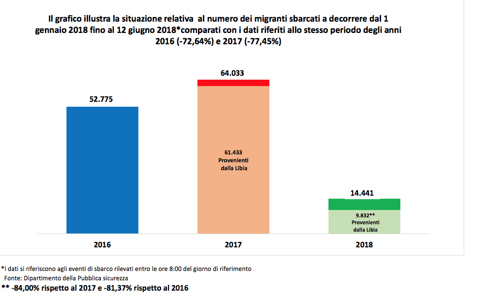 I numeri forniti dal Viminale evidenziano un netto calo degli sbarchi nel 2018, in particolare dalla Libia