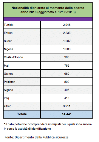 E qui le nazionalità dichiarate al momento dello sbarco: