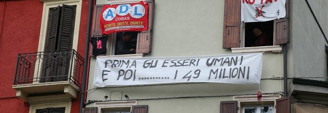 Più vengono tirati giù, più i contestatori li tirano su, in ogni città. A Verona i manifestanti puntano sulla questione dei 49 milioni di euro spariti dalle casse del partito e su uno striscione si legge: “Prima gli esseri umani e poi… i 49 milioni”.