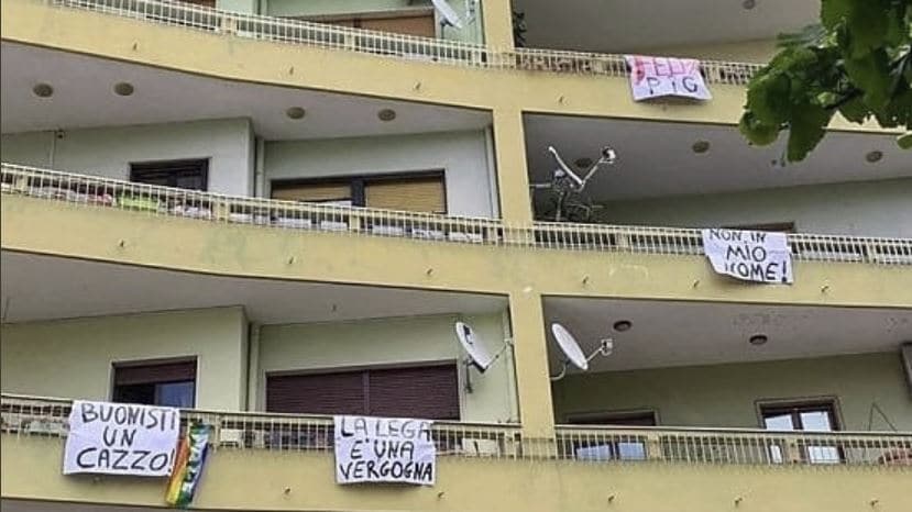 Il 13 maggio sono stati i pompieri – sempre su indicazione della Digos – a rimuovere un altro striscione. “Non sei il benvenuto”, recitava il pezzo di stoffa bianca appeso su un balcone di Brembate.