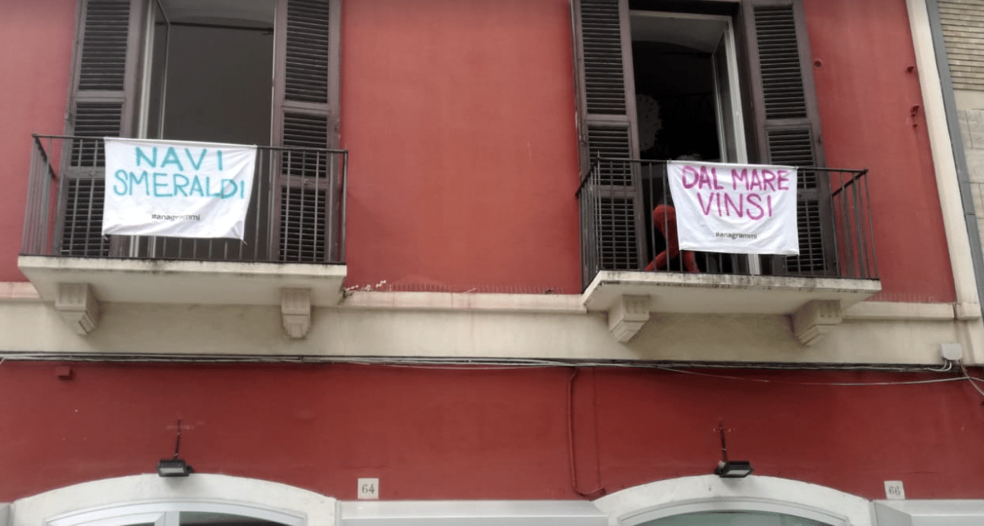 Non la solita frase di protesta e dissenso che si è ormai abituati a vedere scritti sugli striscioni dei balconi degli italiani, ma dei veri anagrammi criptici che nascondono la ben nota frase.
