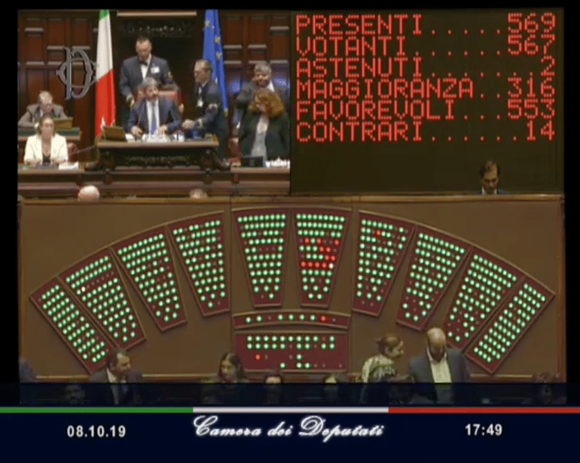 L’8 ottobre 2019 la Camera dei deputati ha approvato in via definitiva la riforma costituzionale sul taglio dei parlamentari. I voti a favore sono stati 553 mentre quelli contrari 14.