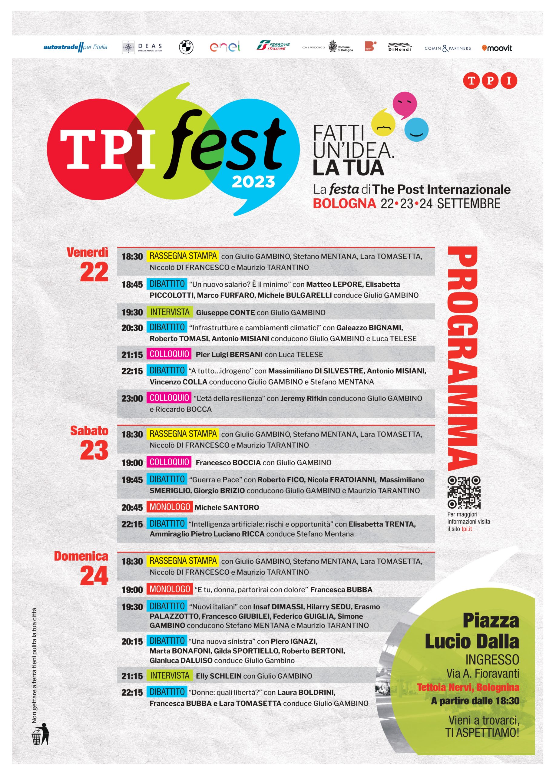 Lo slogan del TPI Fest è: Fatti un’idea. La tua. La manifestazione culturale è patrocinata dal Comune di Bologna e sarà libera e ad ingresso gratuito.