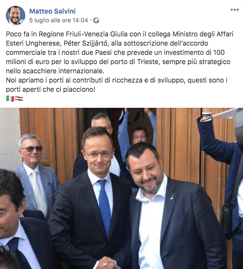 Salvini news – L’Ungheria del premier sovranista Viktor Orban (qui il suo profilo), alleato di Matteo Salvini, ha acquistato un’area del porto di Trieste.