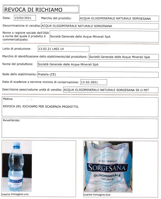 Il lotto interessato al blocco e al ritiro dal mercato era il L 402 14 dell’acqua minerale naturale nelle confezioni da 50 cl in PET, con scadenza fissata al 13/02/2021. Il prodotto in questione era confezionato dalla Lete S.p.a. nello stabilimento di Pratella, in provincia di Caserta.