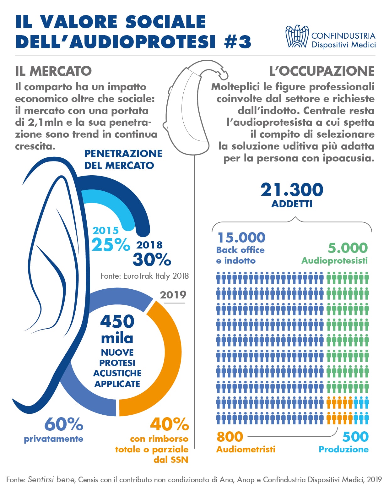 “Le imprese Anifa sono impegnate per ridurre le conseguenze derivate dall’ipoacusia attraverso un investimento costante in ricerca e sviluppo (che dal 2010 al 2017 è aumentato del 74%) per apparecchi sempre meno invasivi e maggiormente personalizzati, capaci di colmare il gap uditivo in maniera sempre più naturale. Stiamo ora lanciando una campagna di informazione per aiutare tutte le persone con ipoacusia e stiamo sottoponendo al Ministero della Salute la richiesta di aggiornamento del nomenclatore contenuto nei nuovi Lea (DPCM 12 gennaio 2017) che prevede un’acquisizione di tali dispositivi da parte del Servizio sanitario nazionale tramite procedure pubbliche d’acquisto, procedura idonea per dispositivi seriali, ma non per apparecchi la cui personalizzazione è alla base dell’alto apprezzamento dei pazienti”, aggiunge Sandro Lombardi.