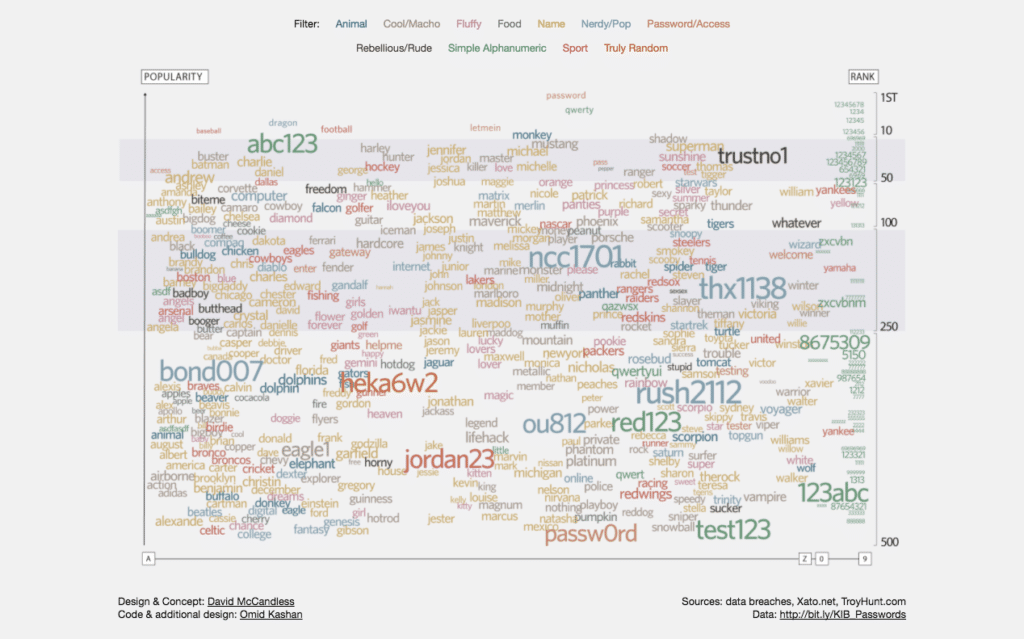 Due infografiche mostrano quali sono le password più comuni e le 11 categorie principali in cui si possono dividere