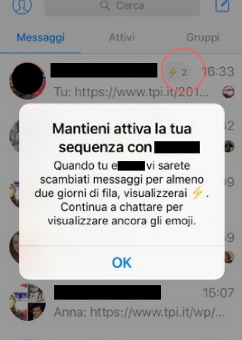 Su Snapchat la funzione ha l’icona di un fuoco, mentre su Messenger è un fulmine giallo, la cosiddetta snapstreak, con accanto il numero di giorni dai quali si sta interagendo, senza interruzioni, con quella persona.