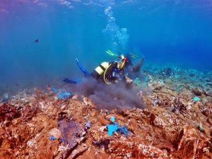 Il video shock è stato girato dai sub volontari dell’associazione ambientalista Aegean Rebreath, e poi ripreso da Repubblica, nei fondali di Andros, un’isola che fa parte dell’arcipelago greco delle Cicladi.