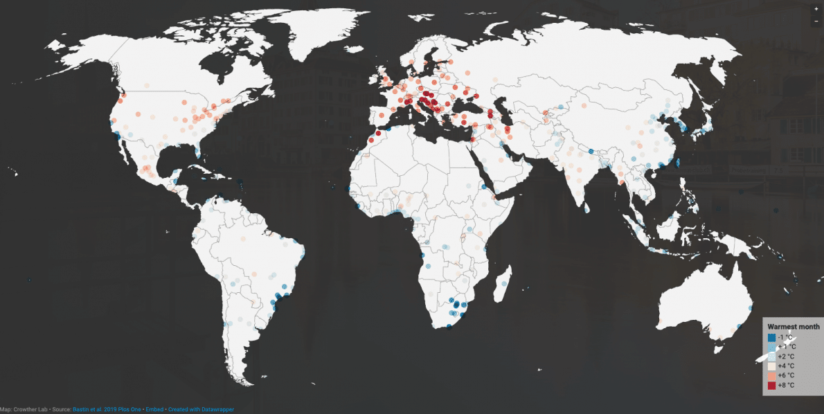 Caldo città 2050 | La mappa interattiva che mostra le città e le loro controparti nel 2050