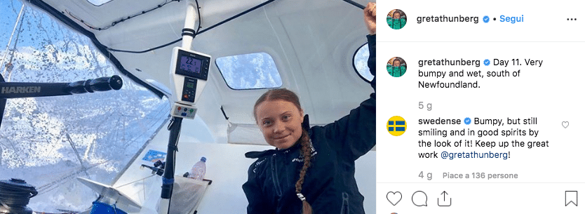 "Ehi, Greta. La tua acqua è imbottigliata nella plastica! Da noi in Italia si dice ‘parla, parla’", si legge nei commenti sotto la foto pubblicata dalla stessa Greta su Instagram