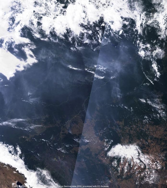 Il programma di osservazione spaziale dell’Unione Europea, Copernicus, ha rilasciato alcune foto degli incendi che stanno devastando la foresta Amazzonica, visti dallo spazio.