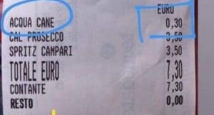 Jesolo, lo scontrino che fa indignare il web: “30 centesimi per l’acqua al cane”