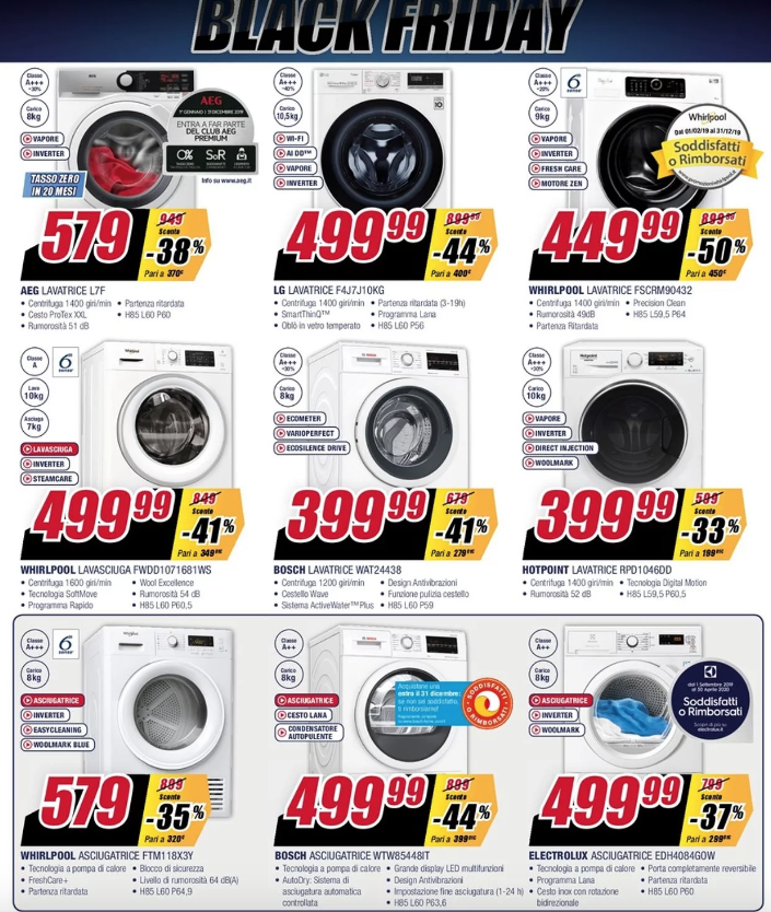 Dal 22 novembre al 1 dicembre 2019 più di una settimana di sconti e offerte interessanti per il Black Friday anche da Trony. Il volantino del grande magazzino annuncia sconti fino al 50% su tantissimi prodotti: dalle televisioni (smart tv) agli smartphone. Passando per frigoriferi, lavatrici e prodotti per la cucina. Qui di seguito il volantino di Trony: