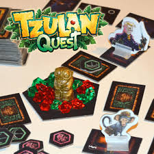 In Tzulan Quest, un gioco per famiglie, con poche regole, e un livello difficoltà volutamente basso, per permettere davvero a tutti di poterlo giocare è un po’ una versione aggiornata del gioco dell’oca, con una disposizione iniziale che può ricordare – specie se si gioca in cinque – Trivial Pursuit.
