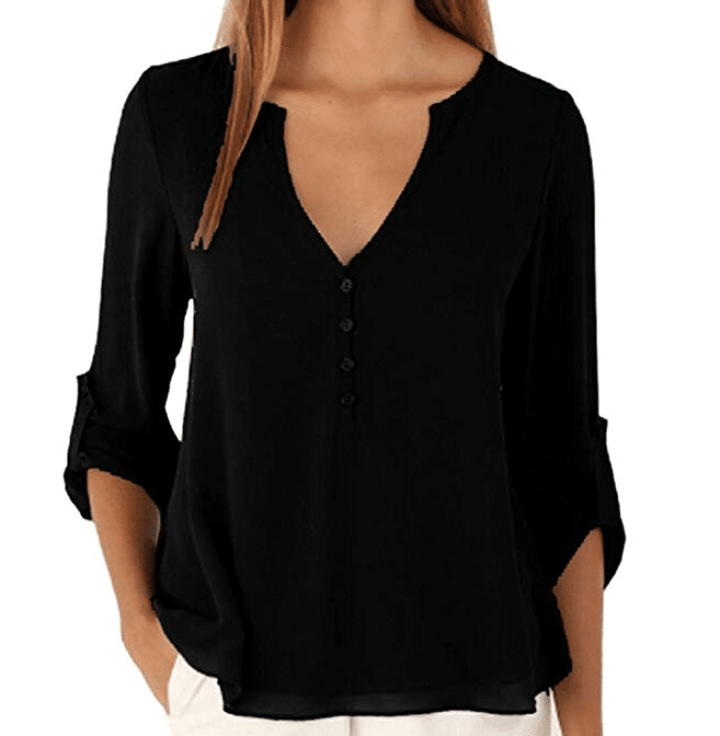 San Valentino 2019 regali abbigliamento donna 3) QIYUN.Z Donne Casuali Manica Lunga Pulsante Chiffon con Scollo V Arredamento Camicie Orlo Irregolare Cime