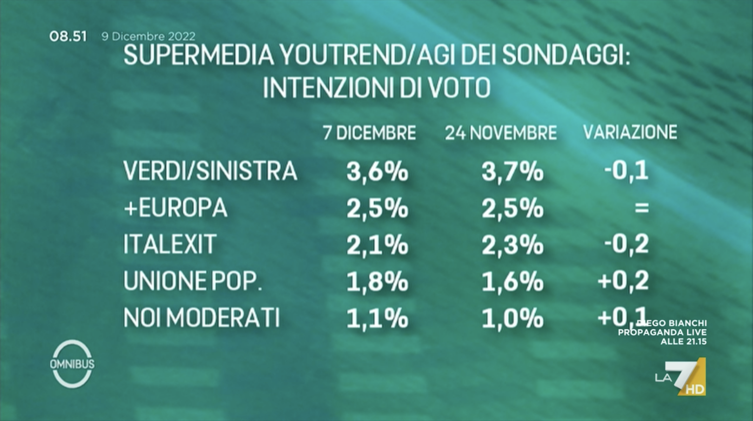 SONDAGGI POLITICI ELETTORALI OGGI 10 DICEMBRE 2022