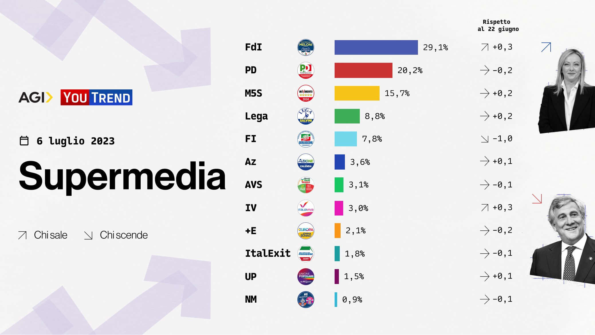 Sondaggi politici elettorali oggi 10 luglio 2023