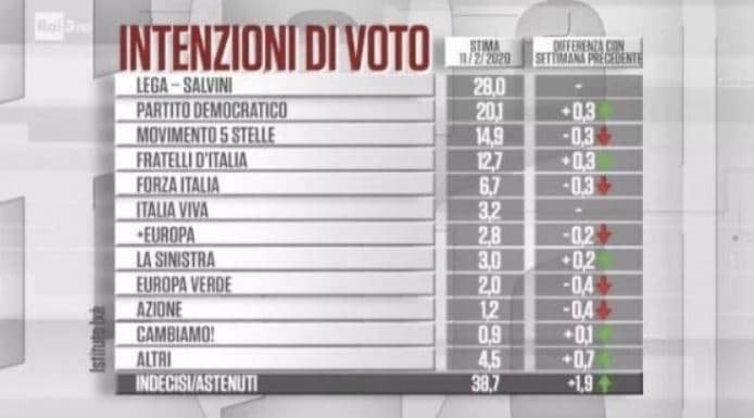 Sondaggi politici elettorali oggi 12 febbraio 2020: la Lega cala sotto il 30 per cento