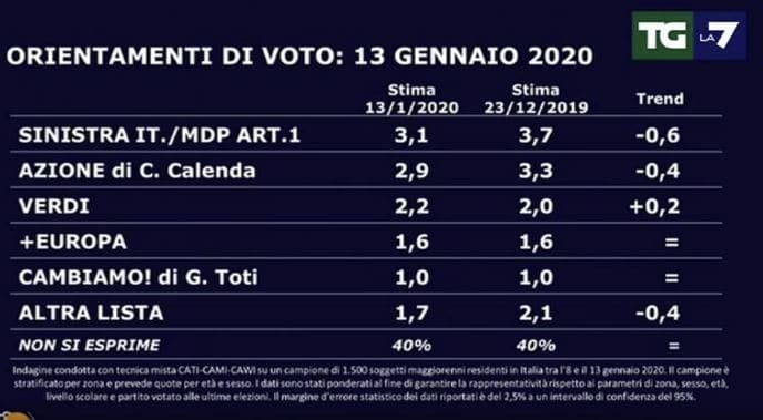 Ecco cosa indicano gli ultimissimi sondaggi politici elettorali di oggi, 14 gennaio 2020, partito per partito