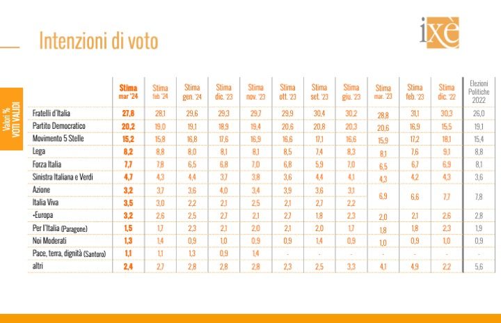 Sondaggi politici elettorali oggi 14 marzo 2024