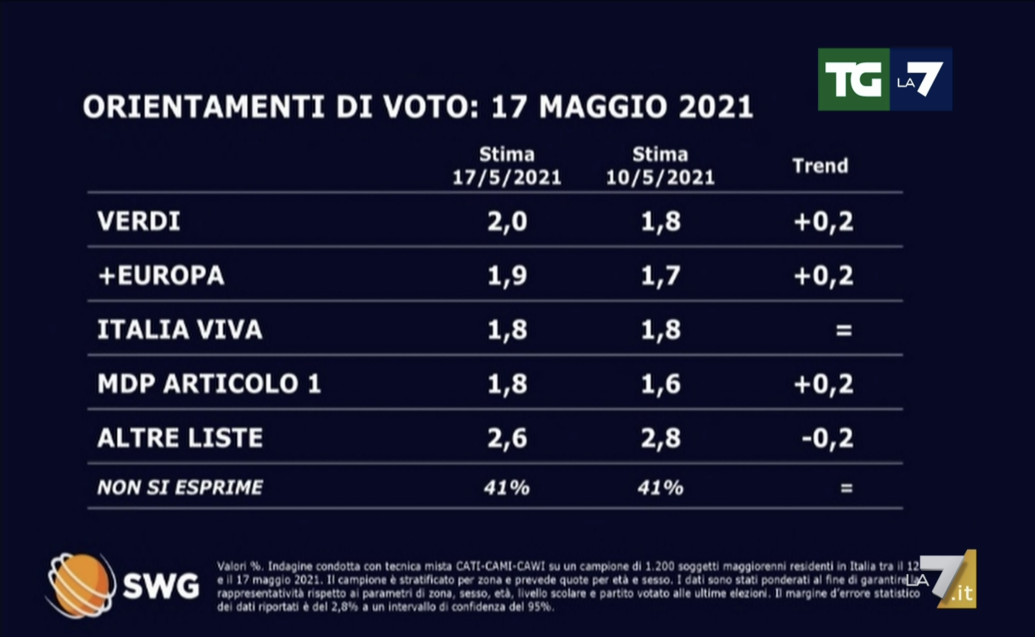 Sondaggi politici elettorali oggi, 18 maggio 2021
